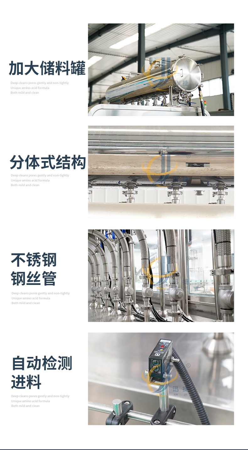 全自動(dòng)液體灌裝機(jī)用于灌裝飲料、果汁,牛奶,酒精,消毒液,口服液,洗衣液等液體,廣泛應(yīng)用于食品,化工,醫(yī)療等行業(yè),灌裝精密,功能強(qiáng),實(shí)用性高的灌裝機(jī)械。