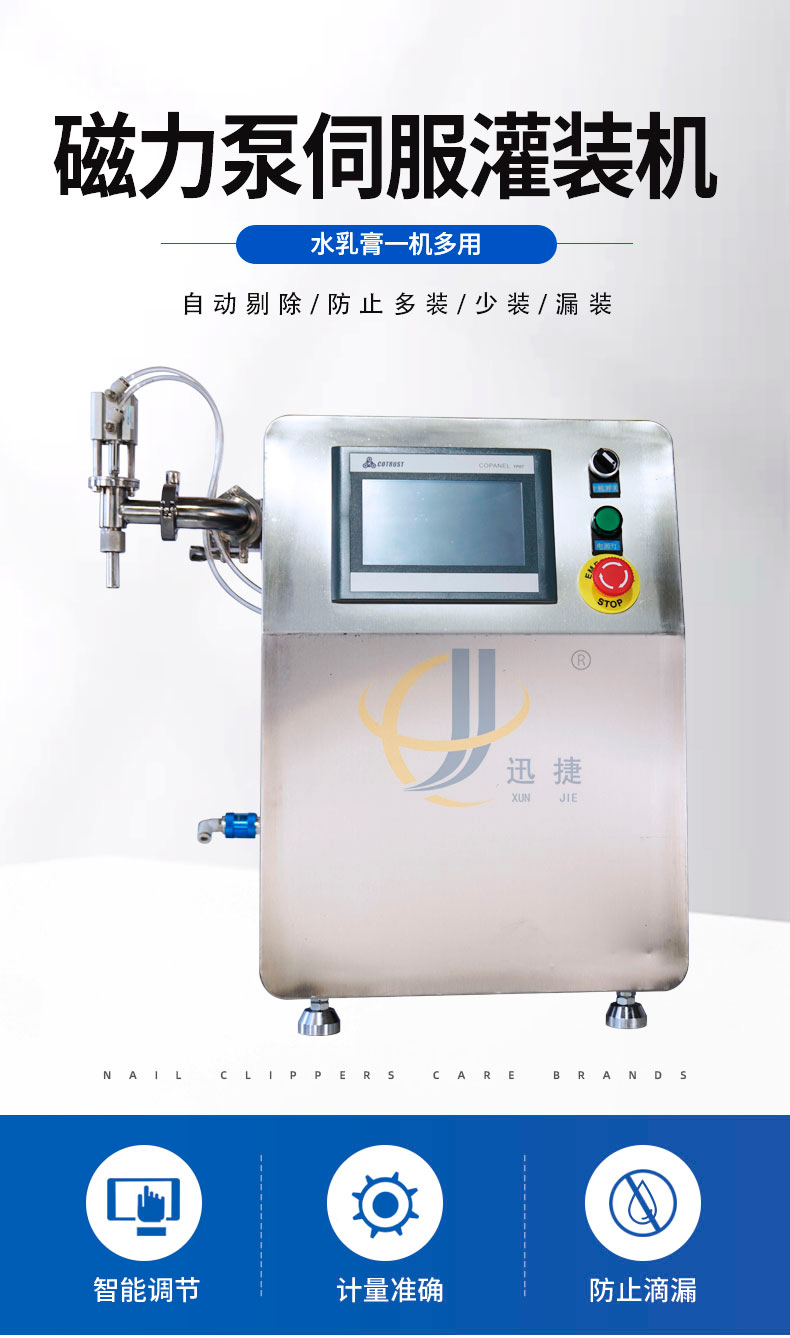 1.本機采用伺服電機驅(qū)動,PLC和觸摸屏控制,316L材質(zhì)齒輪泵灌裝原理,適合日化、醫(yī)藥、食品、油脂等各類流體和半流體物料定量灌裝。2.灌裝量通過觸摸屏調(diào)節(jié),灌裝量調(diào)節(jié)無上限,泵頭易拆裝易清洗,非常適合產(chǎn)品種類多,需要經(jīng)常調(diào)節(jié)范圍的用戶。3.計量準確,灌裝100ML,可以實現(xiàn)不大于0.5ML的誤差。