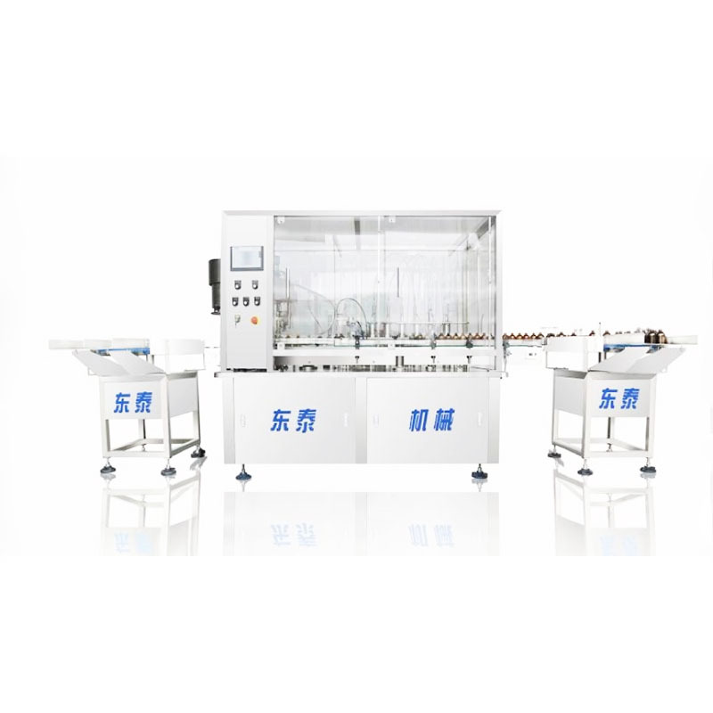 西林瓶(penicillin bottle),又稱:硼硅玻璃或鈉鈣玻璃管制(模制)注射劑瓶,是一種膠塞封口的小瓶子。早期盤(pán)尼西林多用其盛裝,故名西林瓶。西林瓶灌裝的多為液體,藥品、營(yíng)養(yǎng)液等,針對(duì)這種小瓶型液體灌裝,機(jī)械廠家制造出小計(jì)量液體灌裝機(jī)來(lái)幫助液體灌裝的灌裝和生產(chǎn),小計(jì)量液體灌裝機(jī)也叫作西林瓶灌裝旋蓋一體機(jī),小計(jì)量液體灌裝機(jī)屬于聯(lián)動(dòng)機(jī),其工作步驟包含了理瓶、灌裝、理蓋。掛蓋。壓蓋、旋蓋的步驟,滿足了液體包裝的大部分步驟,那么液體灌裝機(jī)該如何選擇呢?